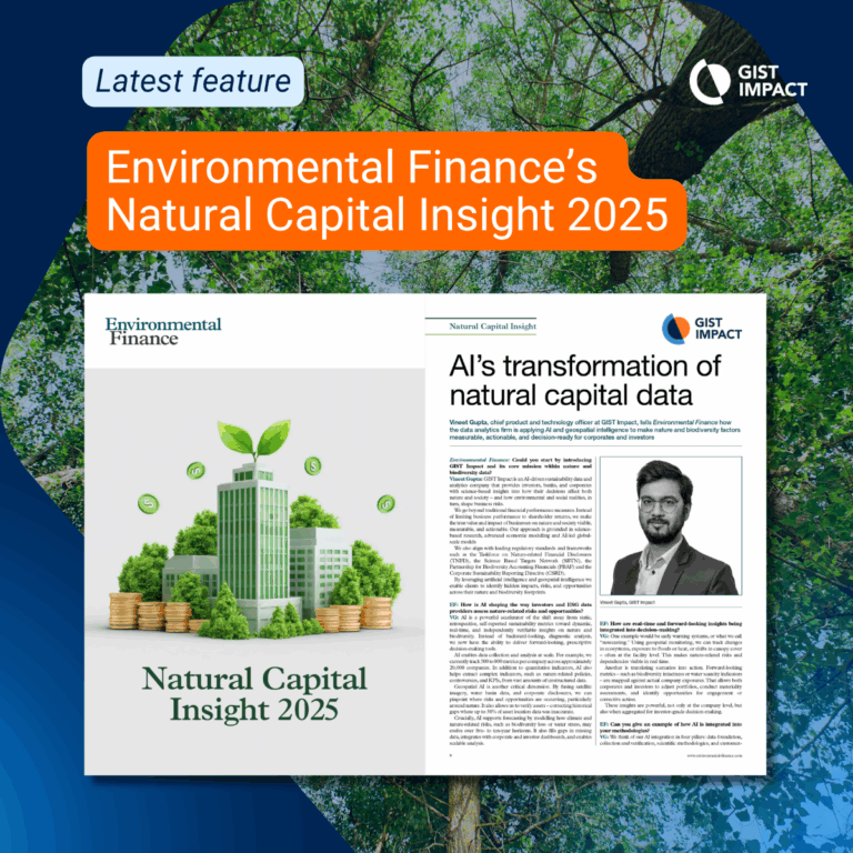 In his interview, Vineet shared how GIST Impact is harnessing AI and geospatial intelligence to make nature and biodiversity factors measurable, actionable, and decision-ready for investors and corporates.
