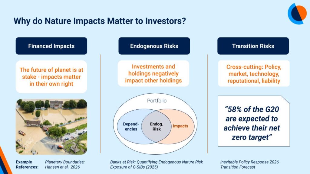 This session focuses on nature and biodiversity impacts, and why they matter to investors.